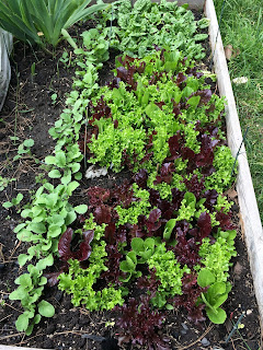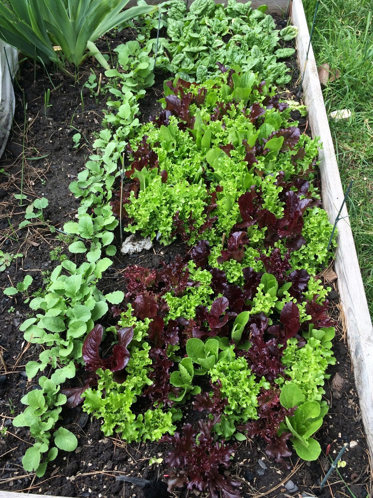 The garden is growing and we have WAY more lettuce than we need! My lovely hubby has made me a new garden bed. It will have mostly tomatoes and peppers since my other 2 garden beds are full of garlic, broccoli, cabbage, cauliflower and lettuce, spinach, radishes, carrots, and kale…