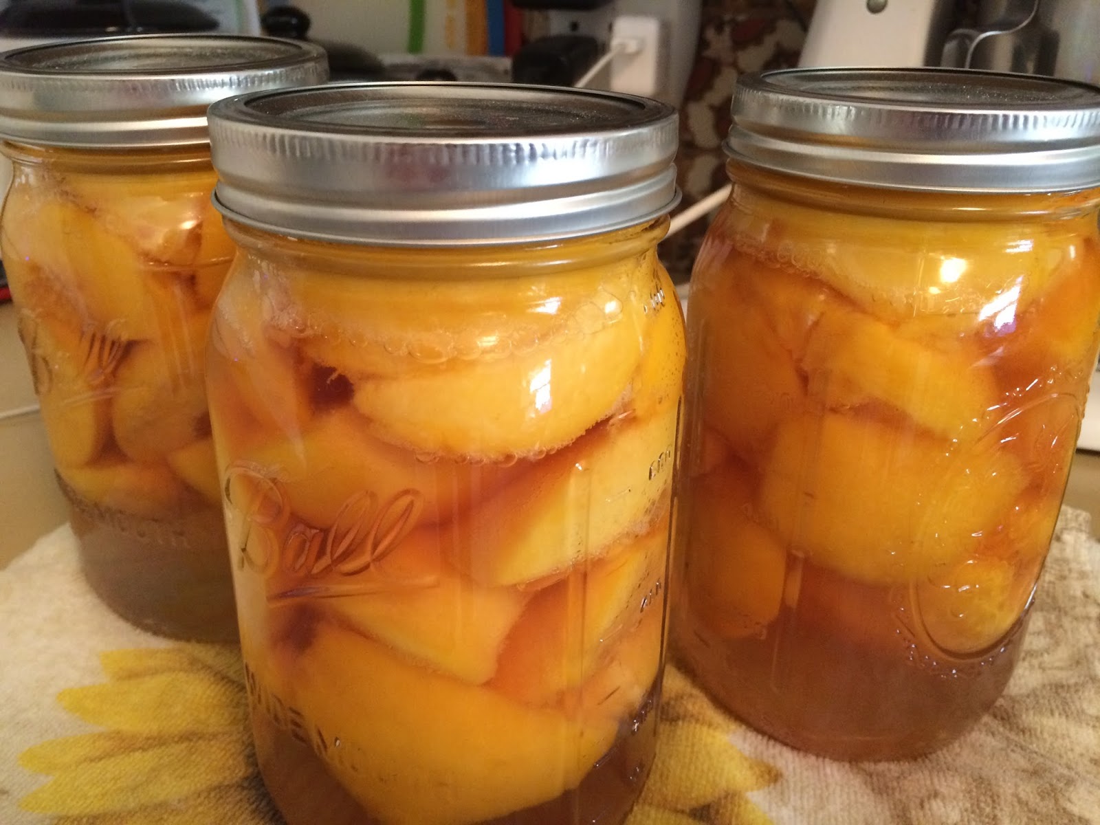 Well, let’s just say that I did get some peaches canned but overall the project was a flop. Maybe it is just because my heart was not into it and my mind was not on task. It just seemed that most of the peaches were rock hard or way over ripe…I ended up freezing a bunch. I only have a small canner so it was probably good that I did not process too many jars. There was water going everywhere because I had it filled to the very top! So, it’s not like it was a total fail, I have lots of frozen peaches for pies and cobblers but I just disappointed with the quality of the fruit I had purchased.