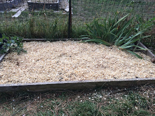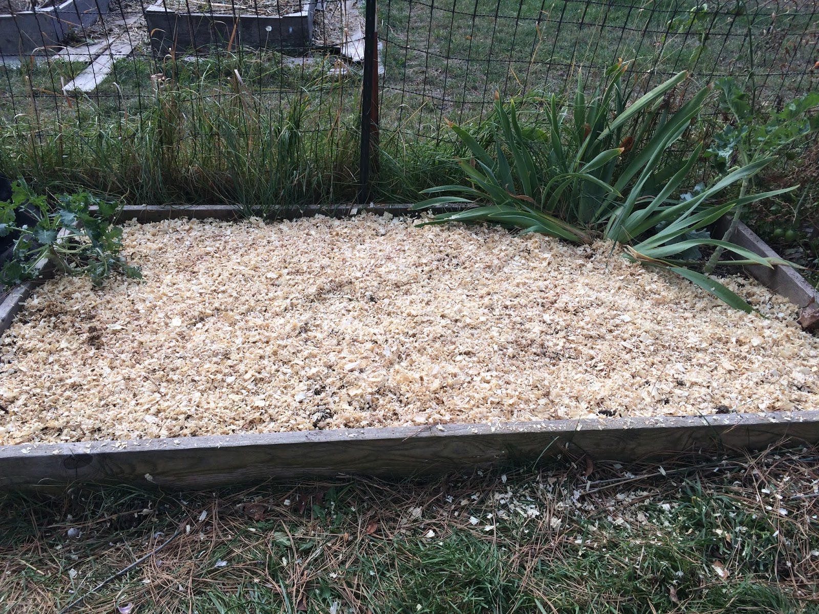 I cleaned out one of my 3 beds and planted my garlic. Place a really thin layer of pine shavings over the top.