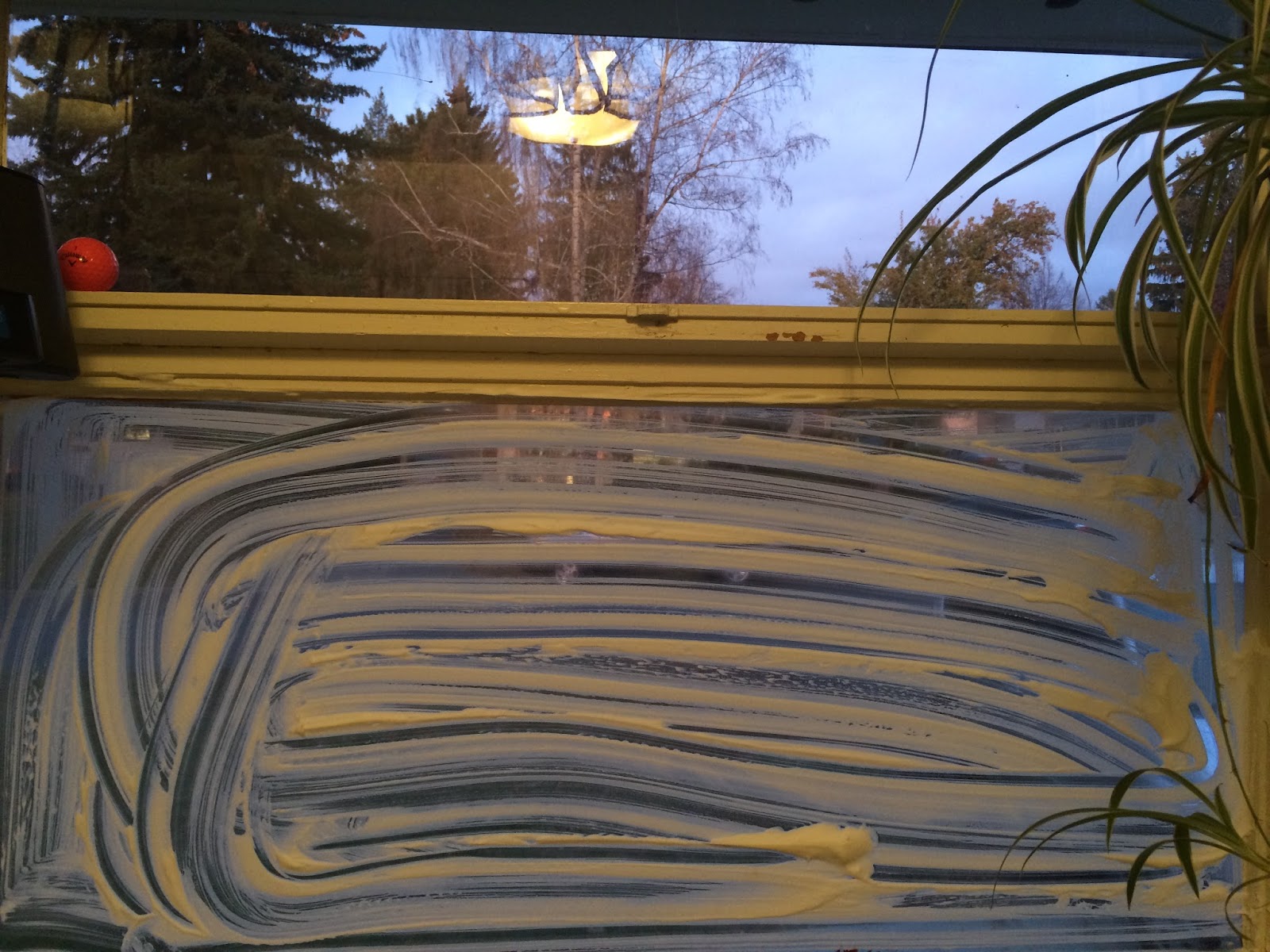 So, I read an article about using shaving cream as a de-fogger. So, I decided to test this and used shaving cream on the bottom window…you spread it on and then wipe it off (I used a bit too much…)