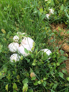 I think I have mentioned before that we have Meadow Mushrooms growing in our front yard. Our neighbor told us years ago that they were safe to eat but we did not try them for a couple of years.