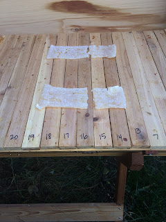 Miticide strips on top of bars where the brood nest is located (below these bars). |