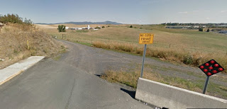 | Drive way entrance to property at edge of town. You can see the University of Idaho dairy farm straight ahead in this photo. |