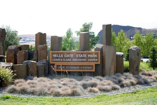 Hells Gate lies on river bottom left over from the great ice age floods about 15,000 years ago. At the south end of the park are basaltic columns from the Pomona flows 14 million years ago. Hells Gate State Park was once the site of a Nez Perce Village. Little is left of the village, but depressions south of the campground are the remnants of pit houses used for years by the Nez Perce as they fished for lamprey near Astoin Creek.