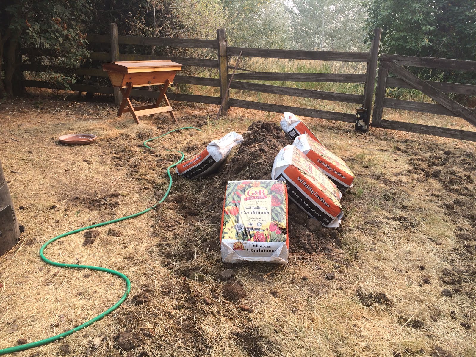I bought some soil conditioner to put on top of the mound.