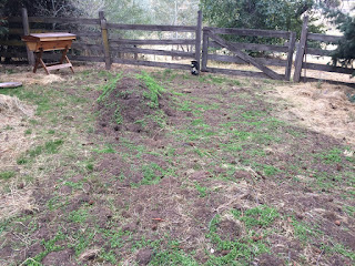 I thought maybe the voles would not like the Hugelkultur mound but I was wrong…they are already tunneling around in there! I have been putting coffee grounds in their holes…hoping that it will detour them (thanks Nora, for the suggestion!).