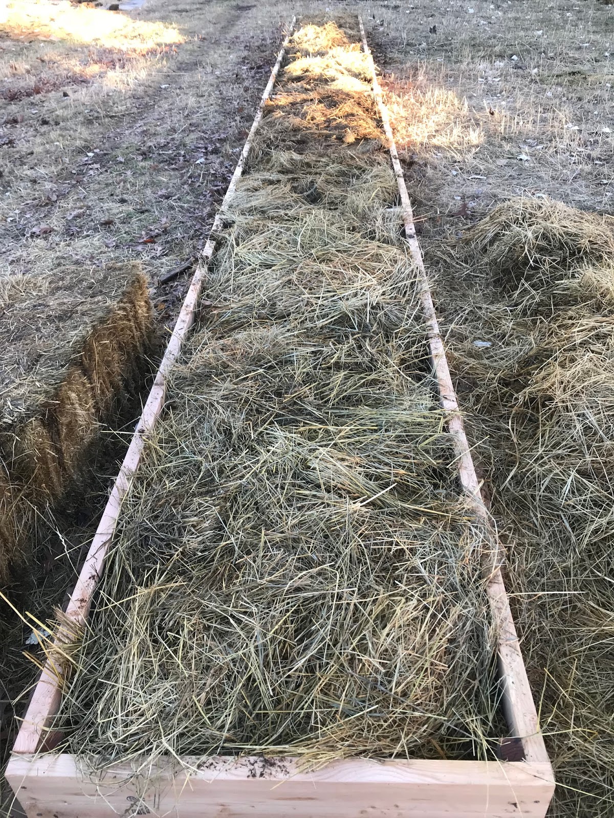 These are the blueberry beds.  There are 4 beds that are 8 feet long by 3 feet wide and they are 8 inches high/tall.  I plan on plating 2 bushes per bed for a total of 8 bushes.  Blueberry plants really like acidic soil (about pH of 4.5).  I placed sulfur in the beds to help lower the pH.  I had read that it is best to do this several months before planting so fingers crossed that it works.  Hopefully, we will be planting bushes in the spring.