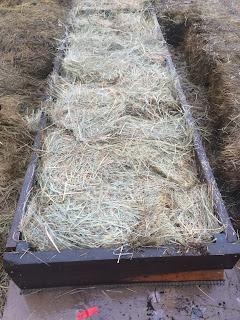 Here is our little strawberry bed (this shows the rabbit poop/shaving mixture).  I am planning on putting 10 strawberry plants in it.  Then, next fall, I will build another one and plant 10 plants in it.  We will keep doing this each year until we have 4 beds.  I have read that strawberry plants last about 3 years and then need to be replaced.  So, the idea is that as the last bed is built, the first bed will be pulled out and new plants will be placed in it.  So, we will always have 3 beds at top production and one in transition…