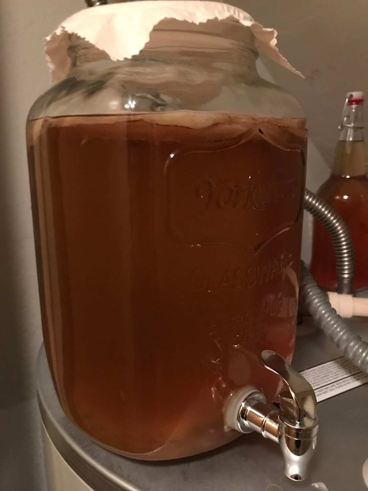 | My continuous brew jar of kombucha. We keep it on top of our water heater. |