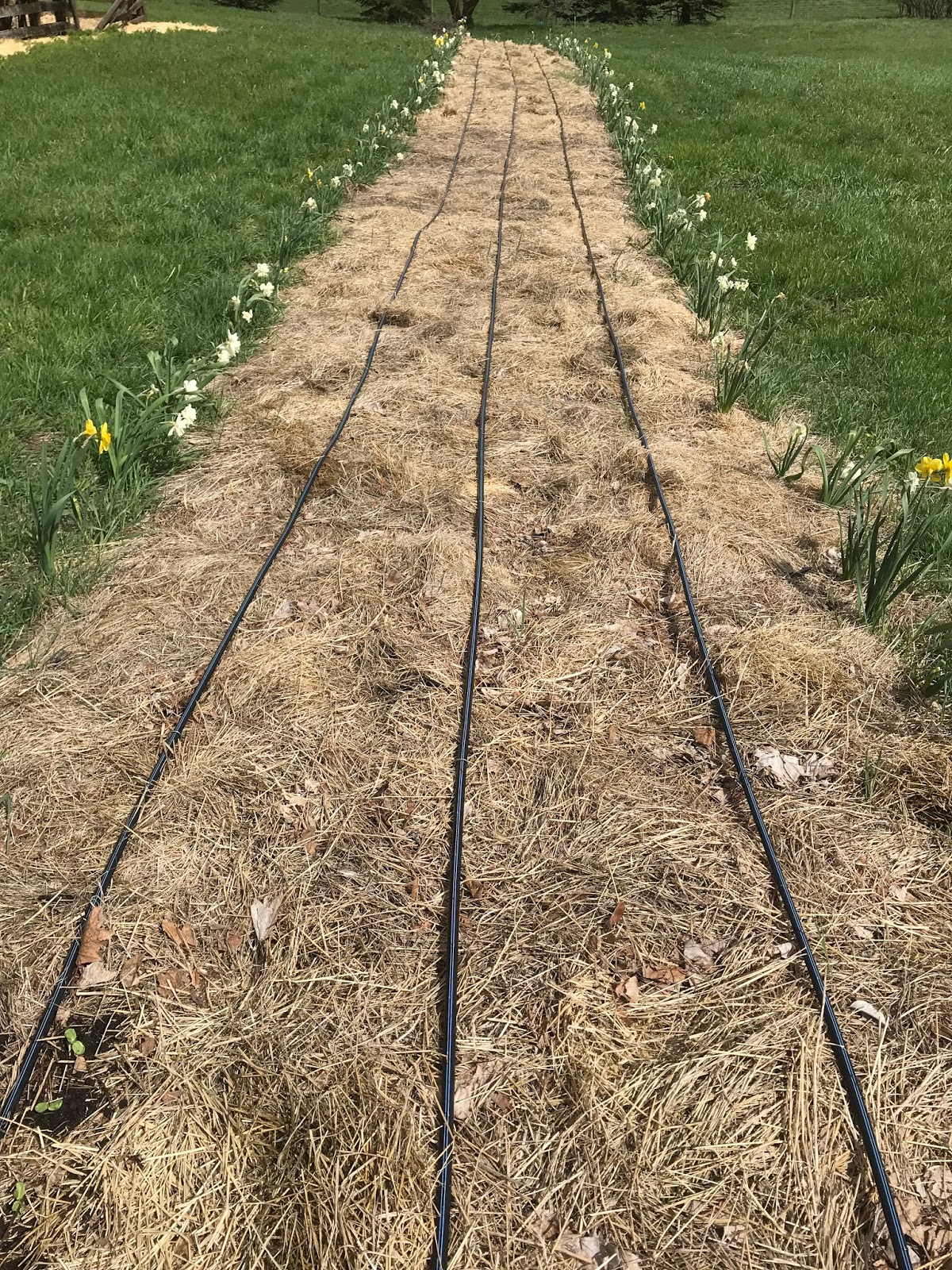 So, back to the sunflowers. Yes, I am trying to grow them at our new farm! I laid out the drip hoses last week.