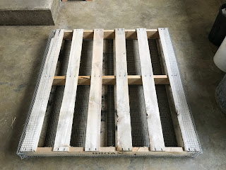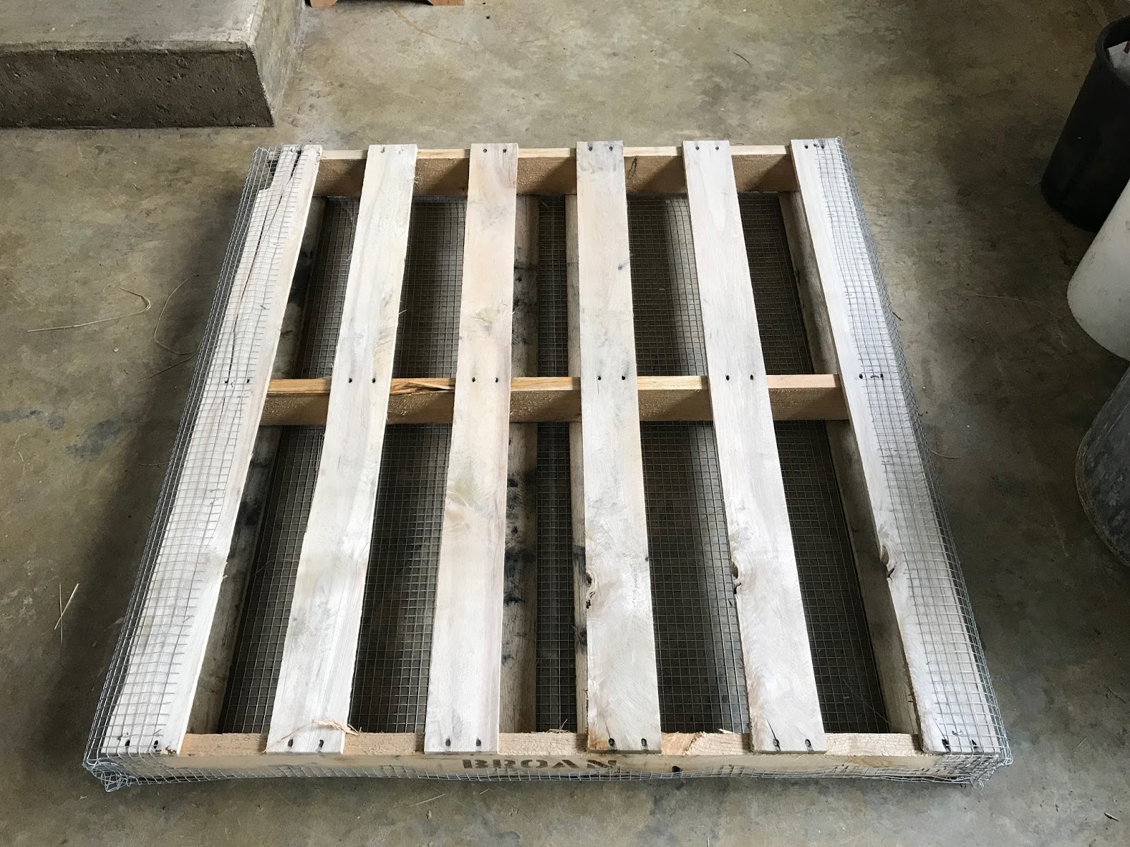 This shows the bottom of the pallet with the hardware cloth on it. |
