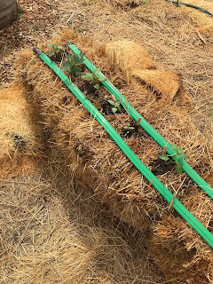 I put some soaker hoses on the top of the bales for watering.